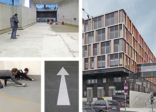 Der Ladehof des Kinder- und Herzzentrums Innsbruck ist ein zentraler Knotenpunkt für Lieferanten: Container mit Wäsche, Medikamente und andere zum Krankenhausbetrieb gehörende Utensilien werden hier täglich zugestellt bzw. abgeholt. Damit die Oberfläche des neu errichteten Hofes den Belastungen der ein- und ausfahrenden Fahrzeuge dauerhaft standhält, sollte sie mit einer extrem widerstandsfähigen Abdichtung versehen werden. Im Auftrag des Betreibers, der Tiroler Landeskrankenanstalten GesmbH (TILAK), haben die Architekten der Malojer Baumanagement GmbH & Co. Innsbruck nach einer passenden Lösung gesucht. Gemeinsam mit Christian Bortoli, Triflex Gebietsverkaufsleiter Vorarlberg/Tirol, entschieden sie sich für die Lösung mit dem Topdeck Abdichtungssystem Triflex ProPark auf Polymethylmethacrylat-Basis (PMMA).